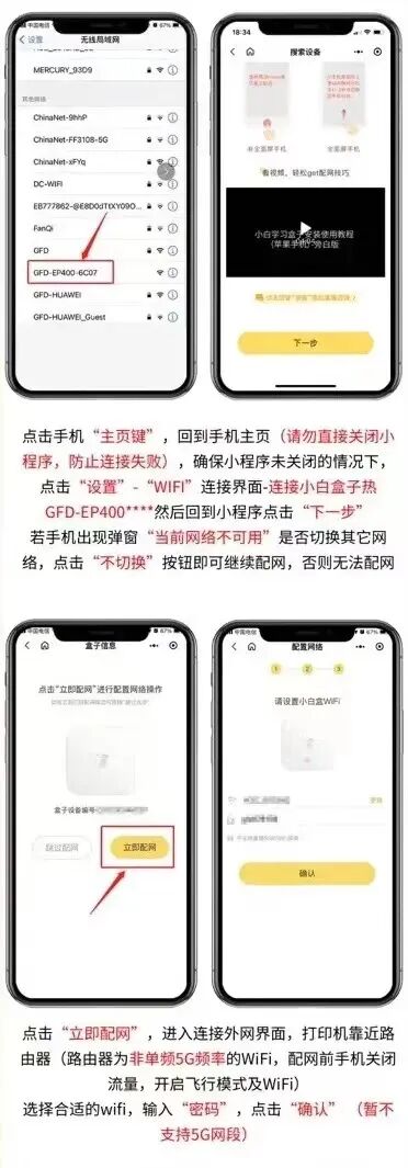 确保打印机和小白盒子靠近路由器放置,重新启动一下路由器,查看小程序设备是否在线;