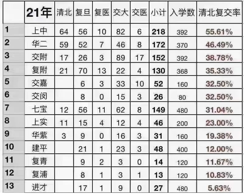 华二的统计数据只包含今年毕业的高三学生。