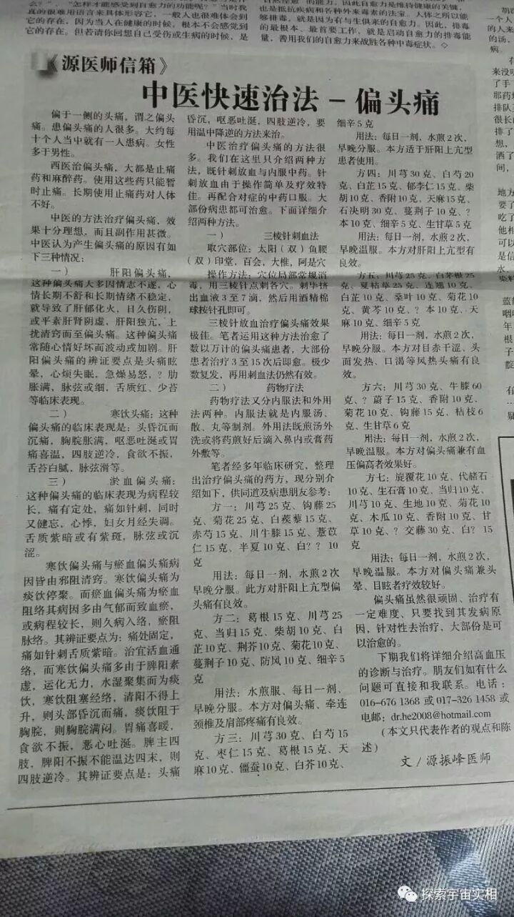 以上文章选自何连元(笔名:源振峰医生)教授发表在报刊上的文章