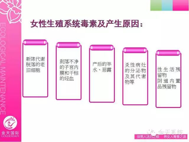 每月月经排泻不畅会导致子宫内膜在褶皱里残留,同时弹性不好,不能及时代谢,时间久了就会发炎,成为垃圾毒素。这些炎性物质如不能及时排出就会导致生殖系统炎症,对面部美容,身体及内分泌造成影响。