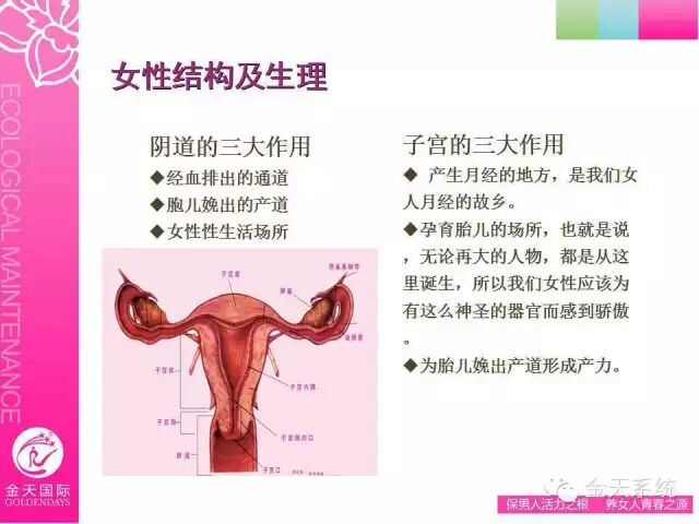 “女人的下半身,决定下半生”,女人容颜和乳房的娇美取决于她是否健康。如果容颜是花、乳房是叶,那么阴道、子宫和卵巢就是女人的根。