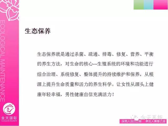 生态型健康女士保养品,让女人不用去医院打针、吃药就能 改善或解决女性六大问题: