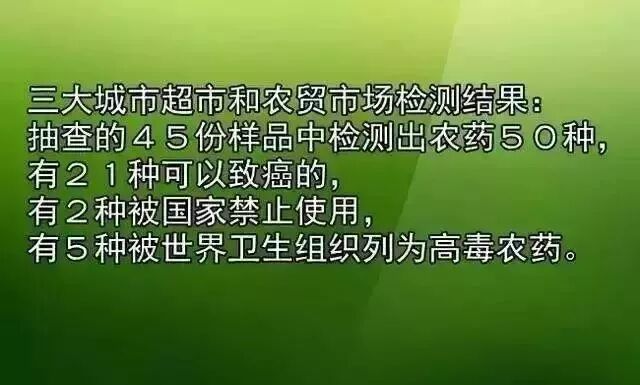 为了增产、增大、增肥,利益最大化,全世界各国都在加大农药的使用量,2014年,全球农药市场规模达627.02亿美元.我国大规模使用农药已经有20多年,中国蔬菜农药残留部分地区超标比例80%。1000多种农药,却只有20多种害虫。我国每年农药用量337万吨,分摊到13亿人身上,就是每人5斤!激素、化肥和农药对土地、植被尤其是地下水资源造成极大的破坏和污染,更对人和动物的血液和内分泌系统、神经系统造成数不清的病变。