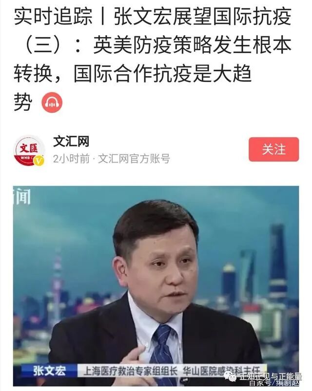 3月21日,上海网红肝炎感染专家张文宏又发声了,而且由世界顶尖泌尿外科医生肖传国所说的以全能专家自居、对国内抗疫“指点江山”,进一步“膨胀”到对国际抗疫“指点全球”,与同事联名发表了《张文宏展望国际抗疫③:英美防疫策略发生根本转换,国际合作抗疫是大趋势》一文。