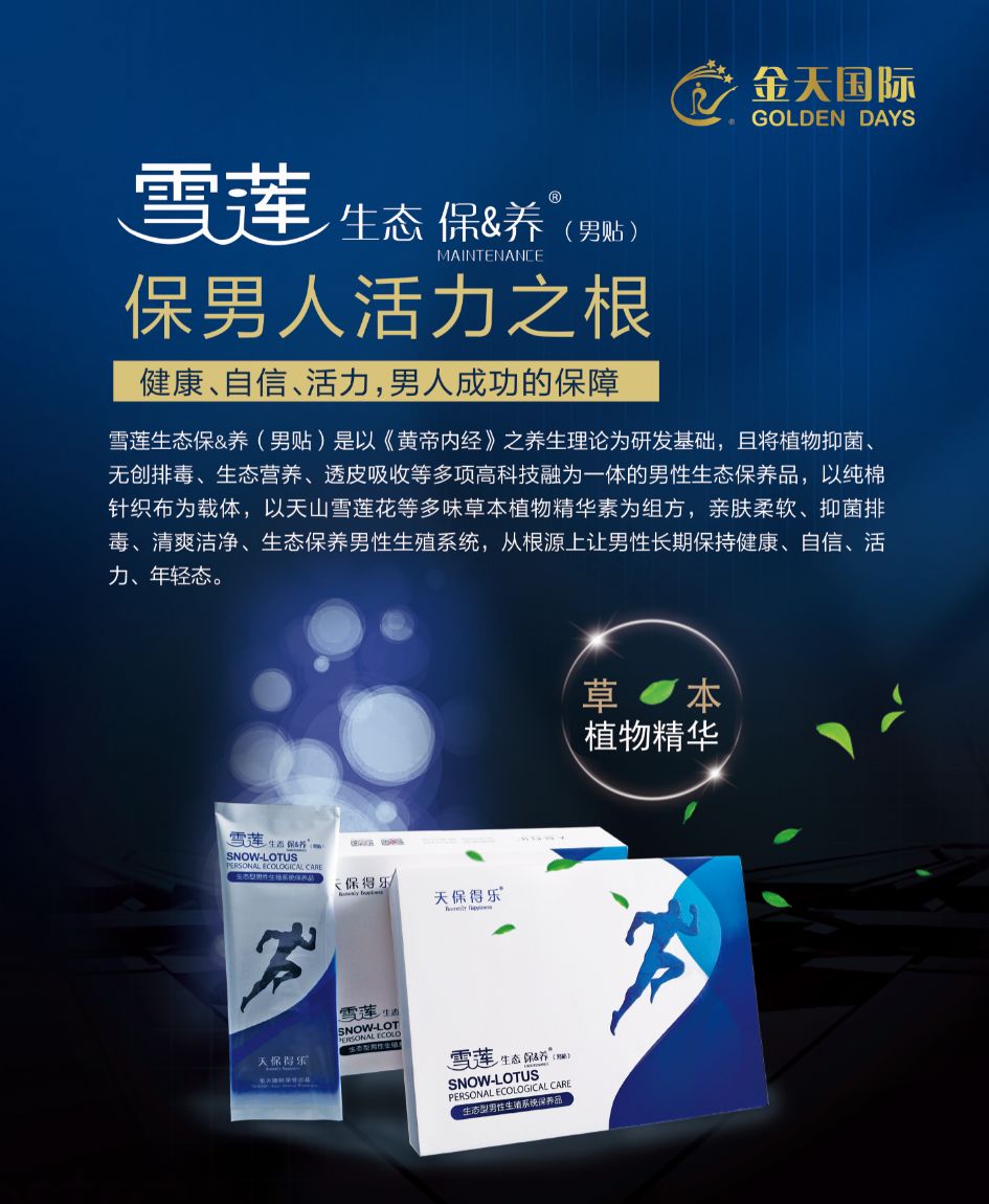 是专门针对男士生殖系统的养护治疗为一体的全球首创的男人卫生巾,贴在男人的裤裆里,让男人不再为了生殖系统的健康疾病去医院打针、吃药、脱裤子,是一款专门针对男性生殖系统保养的生态养护贴,能够解决现代男性的“四大类”现状和危机,让你告别去医院脱裤子的尴尬。