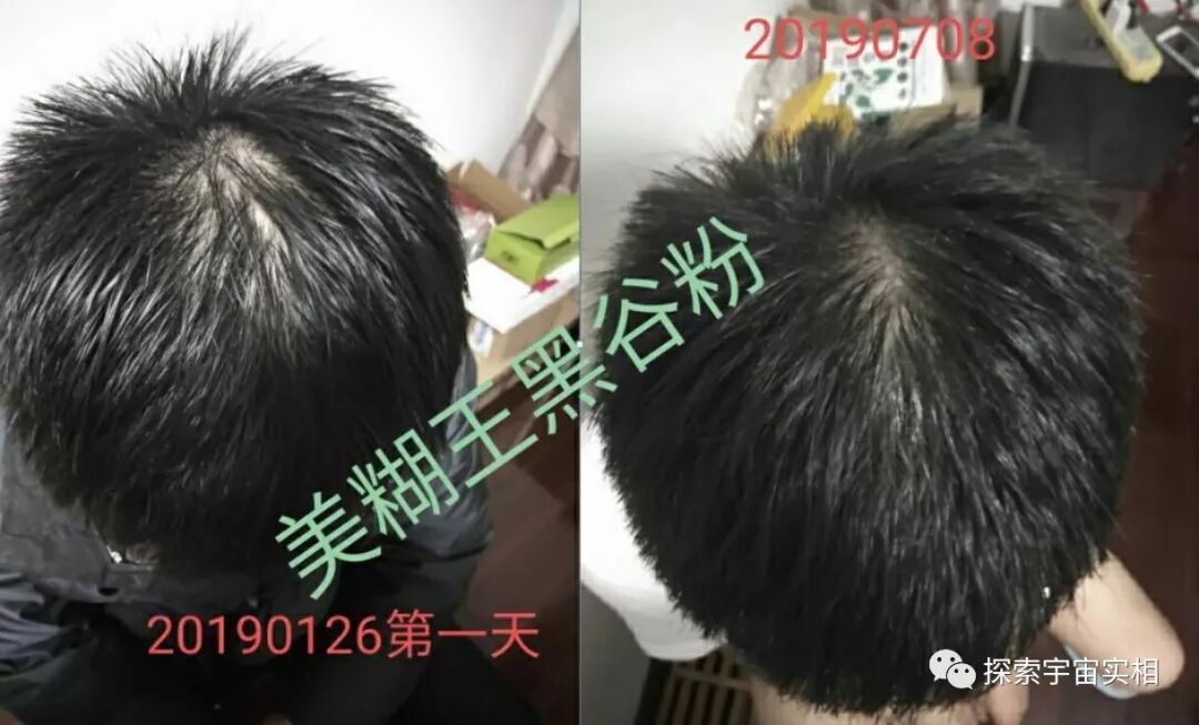 另外一位李先生告诉我,吃了半个多月时,就不脱发了(他以前还有脱发),慢慢长出黑头发,目前头发基本长满了且都是黑发。