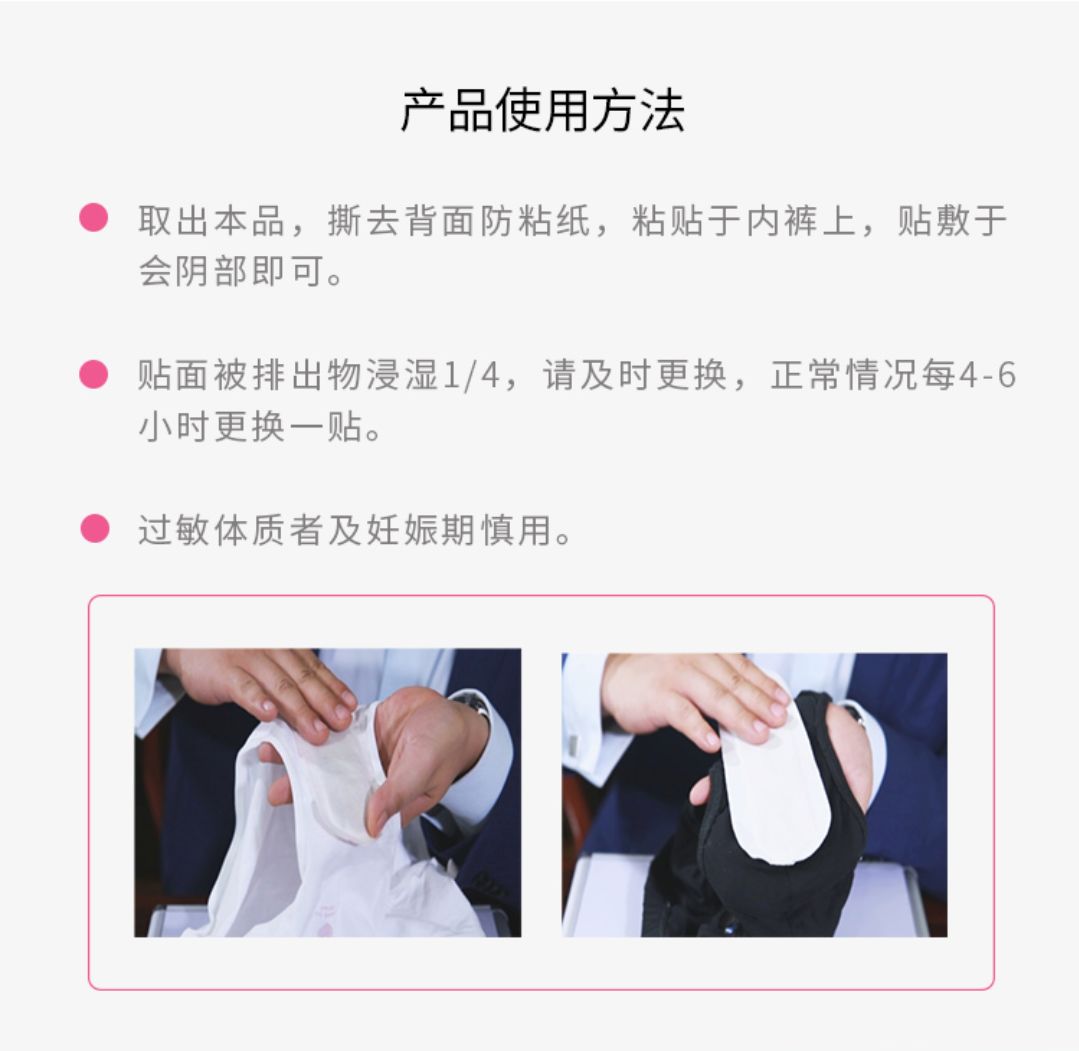 第二层:精华素功能层,采用天山雪莲花等30余味名贵草本植物精华素组方,应用真空低温活性提取及超微粉碎技术提取活性因子,通过控释层均衡、稳定持久的发挥效果,贴于会阴部,在体温的作用下迅速雾化,通过透皮吸收和定向导入技术直接进入体内,发挥疏通、杀菌、排毒、修复、营养多重功效,生态保养,健康生殖。