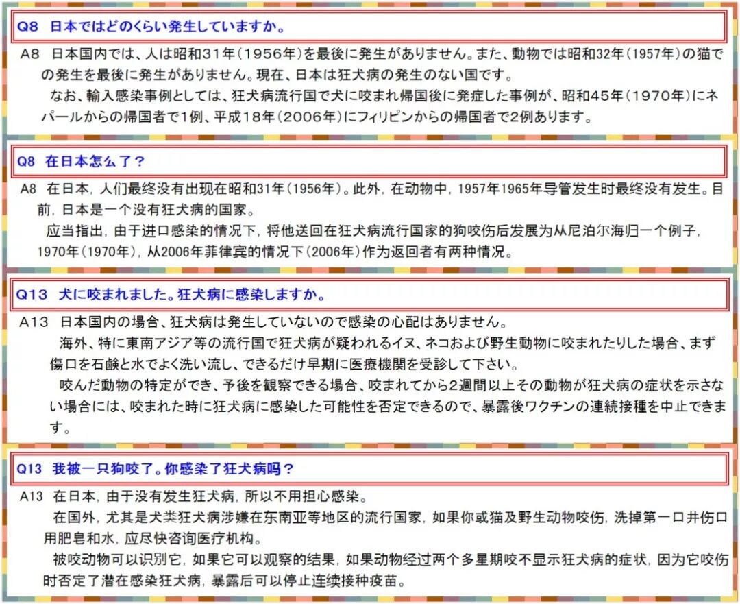 以隔壁日本为例,日本已经消灭了狂犬病,截图来源厚生劳动省(日本中央省厅之一),网址:https://www.mhlw.go.jp/bunya/kenkou/kekkaku-kansenshou10/07.html#q8