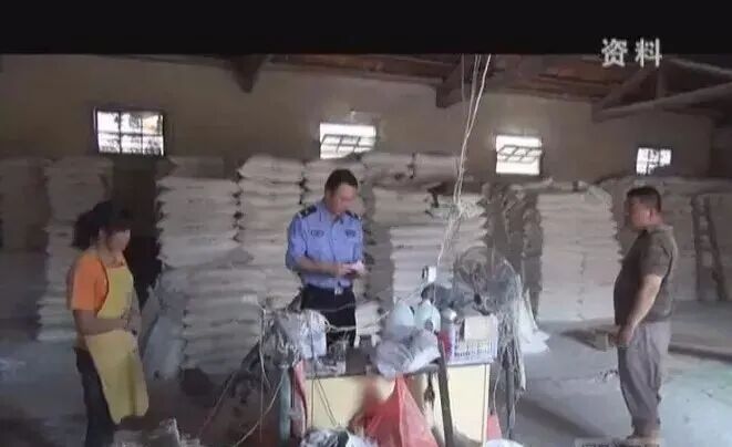 滑石粉源源不断运进面粉厂,掺入面粉中销往周边地区。记者进行了暗访,平度市质监部门联合警方将平度市良金面粉厂依法查处,执法人员在仓库内当场查获滑石粉 200余袋,以及200多袋尚未出售的面粉。
