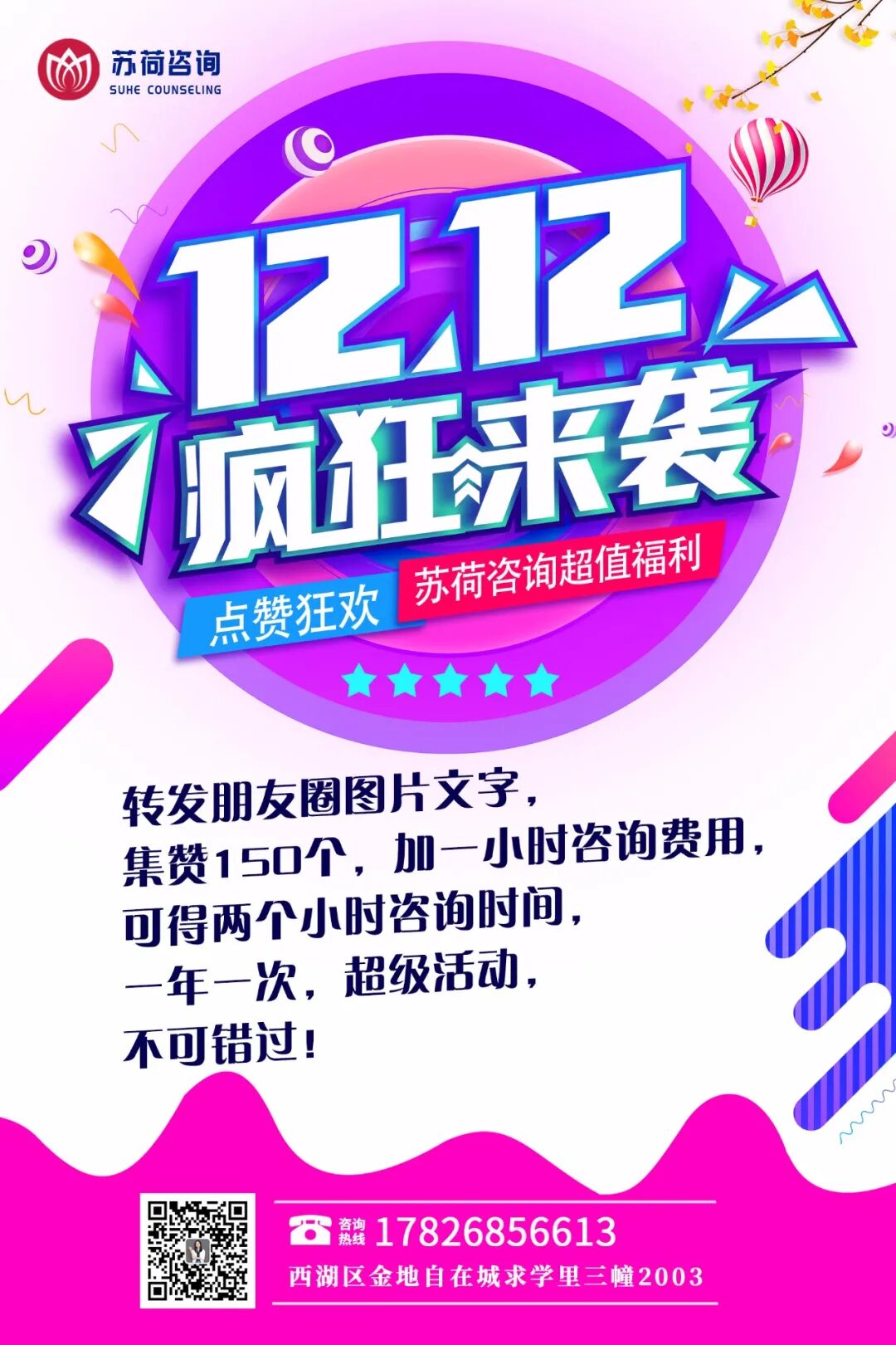 苏荷咨询地址:西湖区三墩镇金地自在城求学里小区3幢一单元2003室