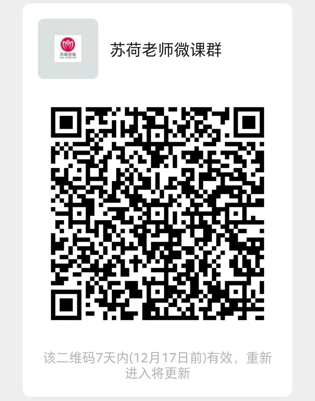 苏荷老师微课群,欢迎入群提问和听课,扫码入群,若二维码失效,请添加助理微信拉入群。