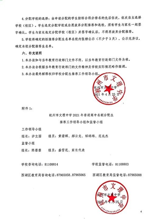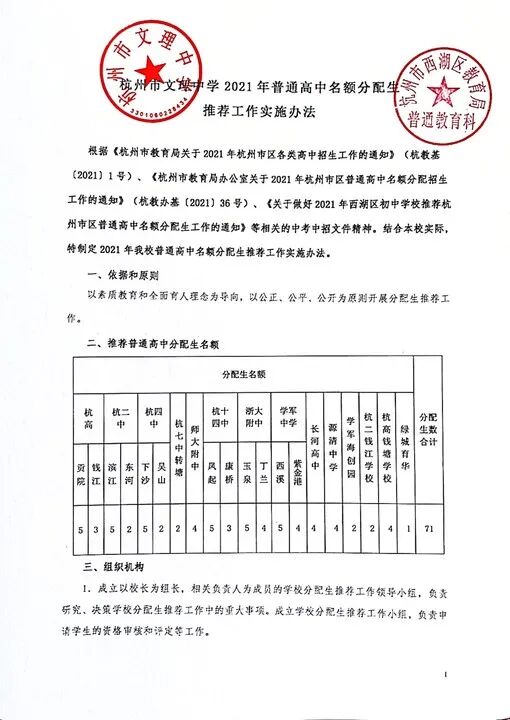 2、杭州市文理中学2021年普通高中名额分配生推荐工作实施办法