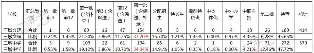 2021届三墩中学、三墩中学文理校区中考去向汇总比例(不完全统计):
