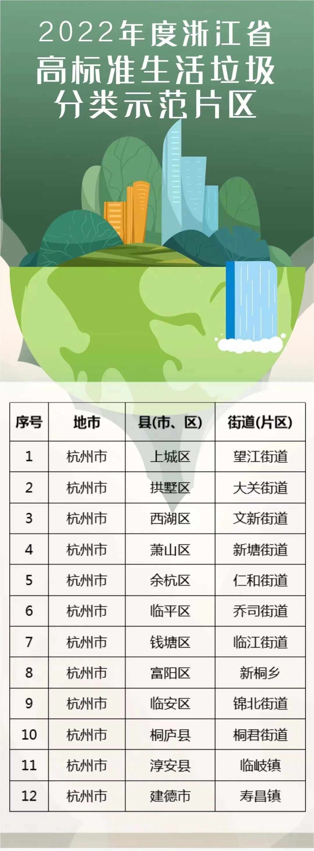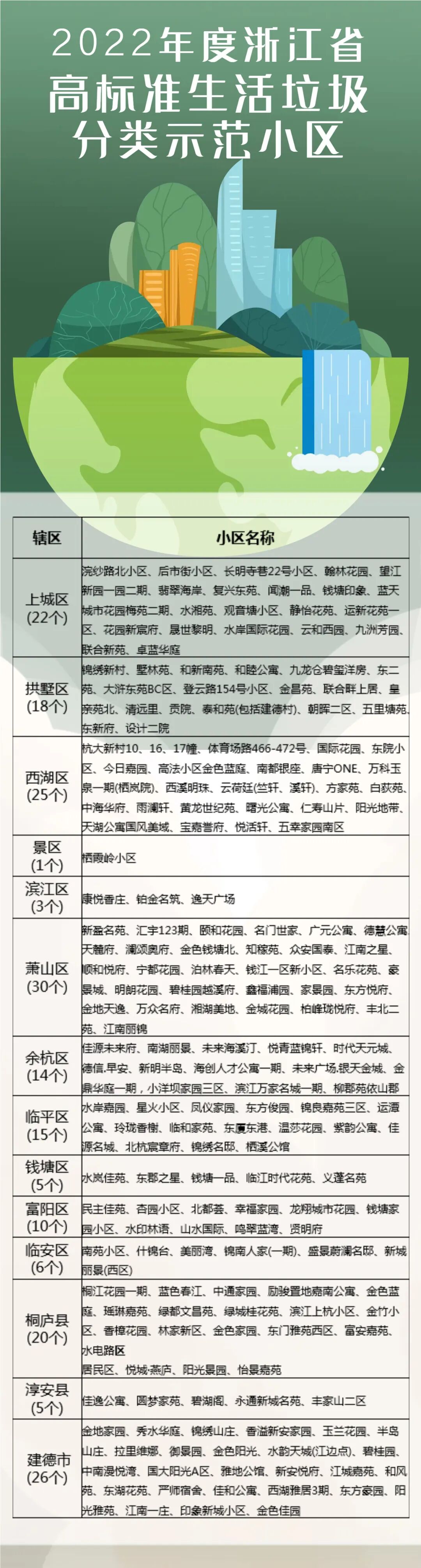 近日,2022年度浙江省高标准生活垃圾分类示范小区、示范片区名单出炉,杭州有200个省级高标准生活垃圾分类示范小区、12个示范片区入榜。