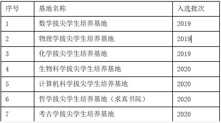此前,2020年9月教育部公布2019年度基础学科拔尖学生培养计划2.0基地名单,共有33所高校的104个基地入选。据《教育部办公厅关于2020年度基础学科拔尖学生培养基地建设工作的通知》,2020年度基础学科拔尖学生培养基地计划建设85个左右。