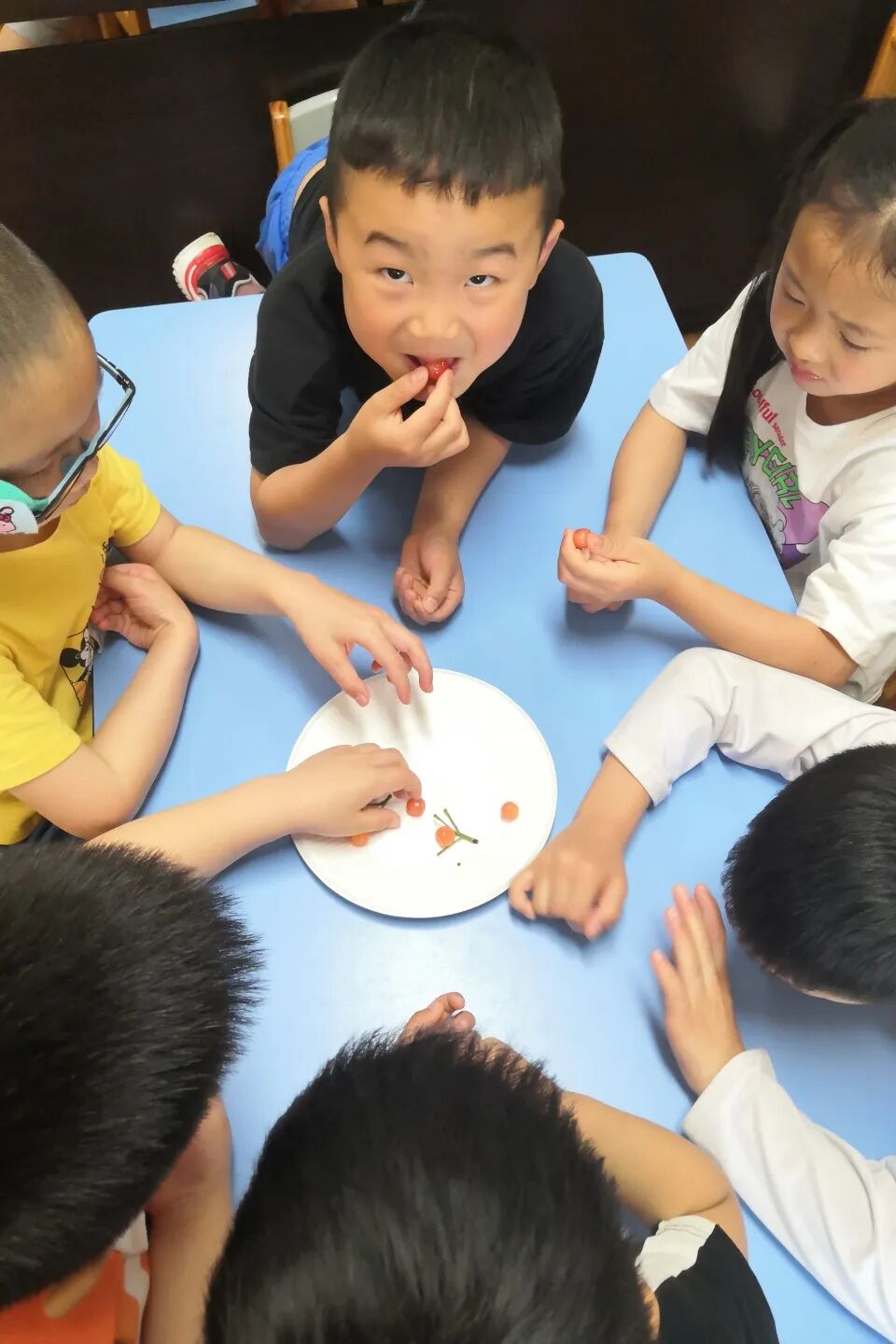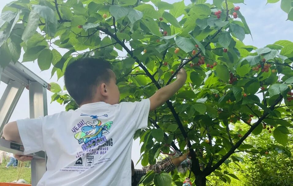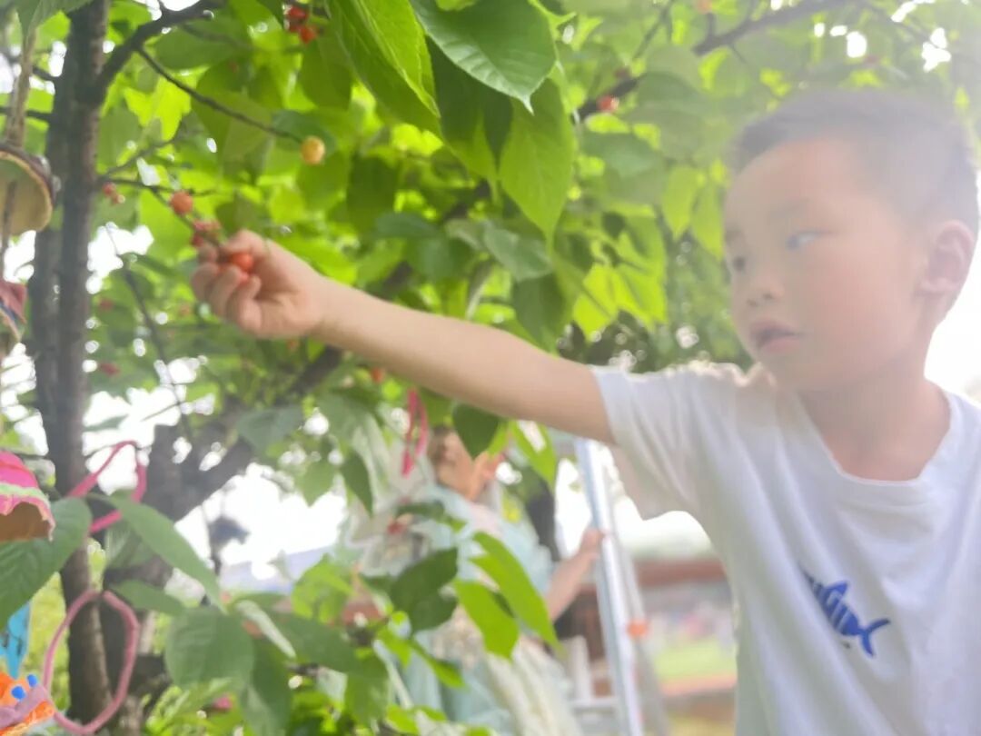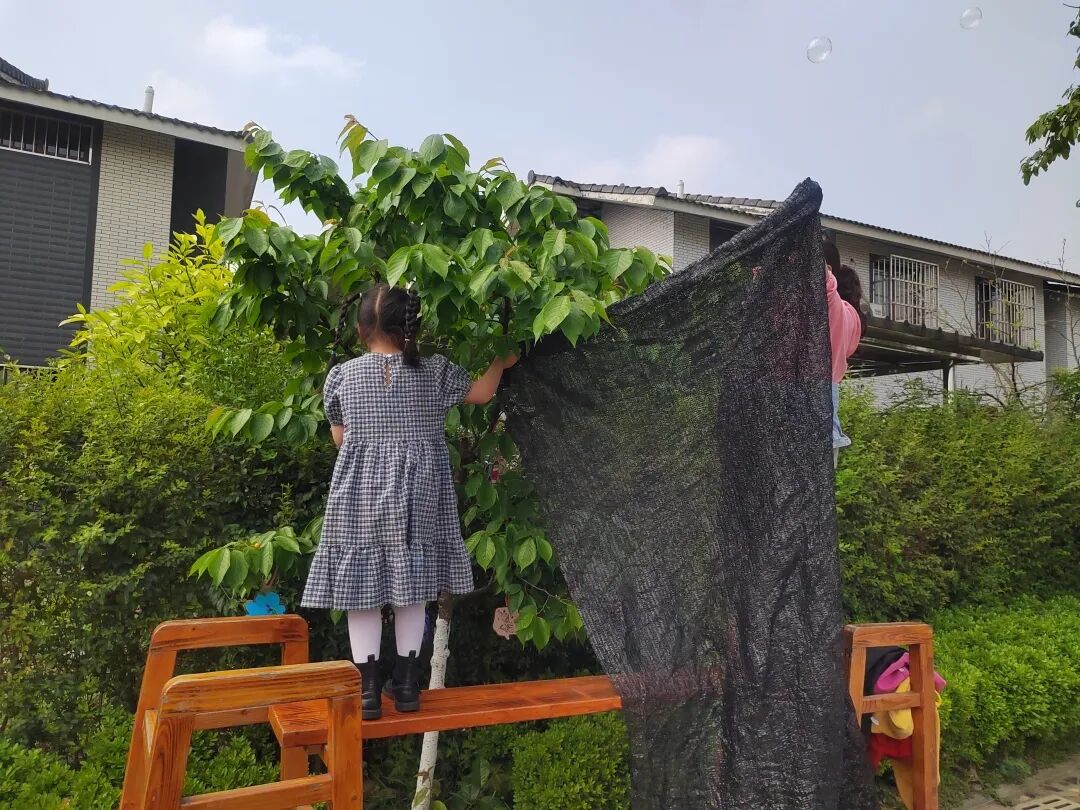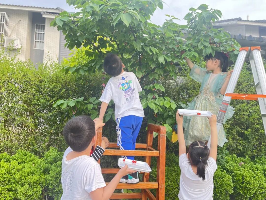 孩子们已经按捺不住,想要收获樱桃,大家分工合作,用自己的方式,准备大显身手。