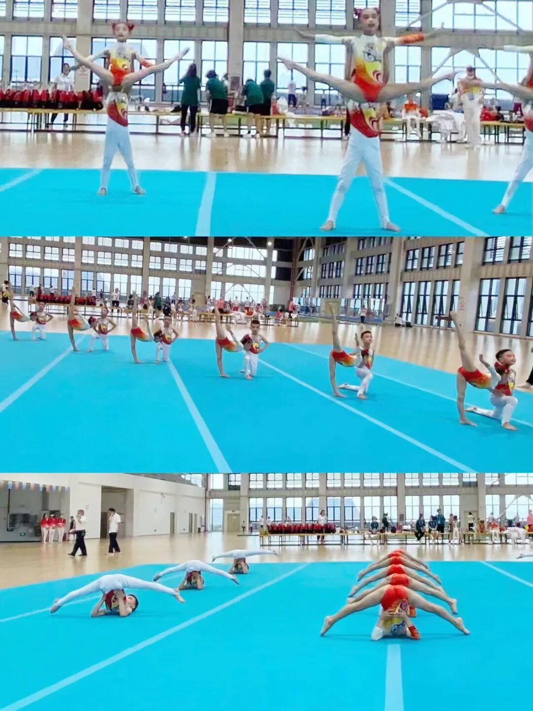 赛场上,京剧《霸王别姬》乐曲一响起,小朋友们就迅速进入了状态,轻盈地托举、流畅地翻滚,以及整齐有力、规范娴熟的小虫跃、背转、倒立等技术型动作的应用,使整个比赛近乎完美,赢得了评委们的一致认可。