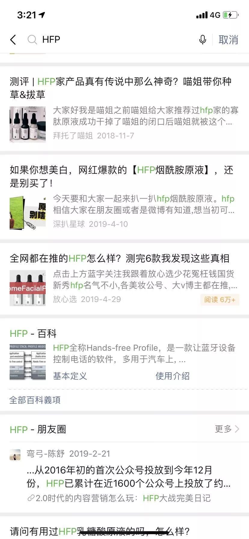 HFP把节约的环节资本通过公众号搭建庞大的社交内容网络,累积到2019年上半年HFP投放量超过6w+篇文章。