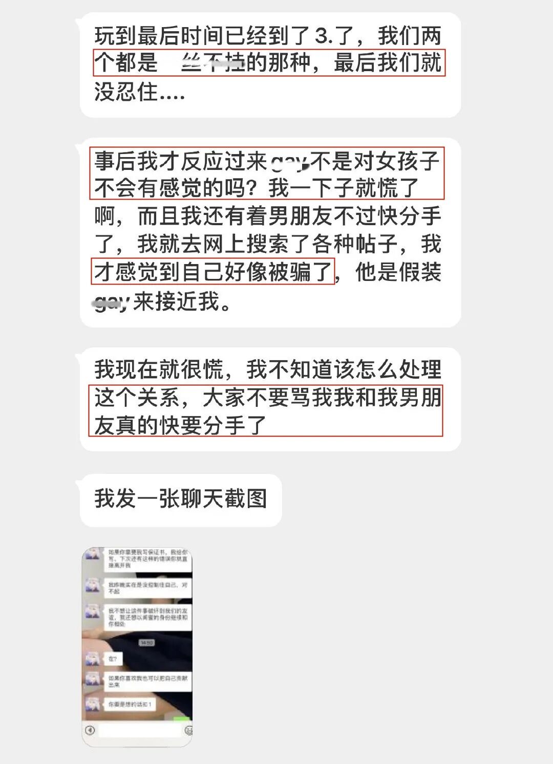 还反复的强调:“他是gay不会对我做什么”