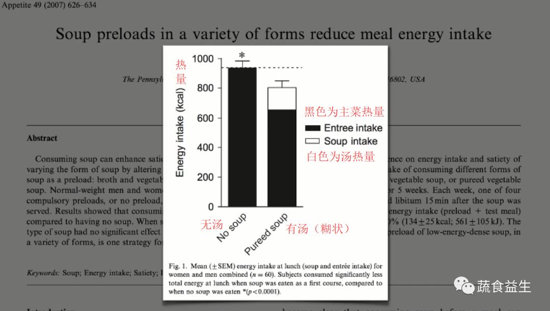 所以如果把汤作为第一道菜的话,主菜就会少吃很多,即使加上汤的热量,吃的总体热量也会比较少。