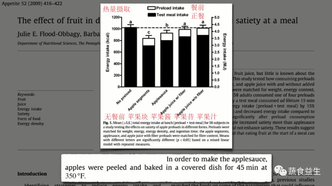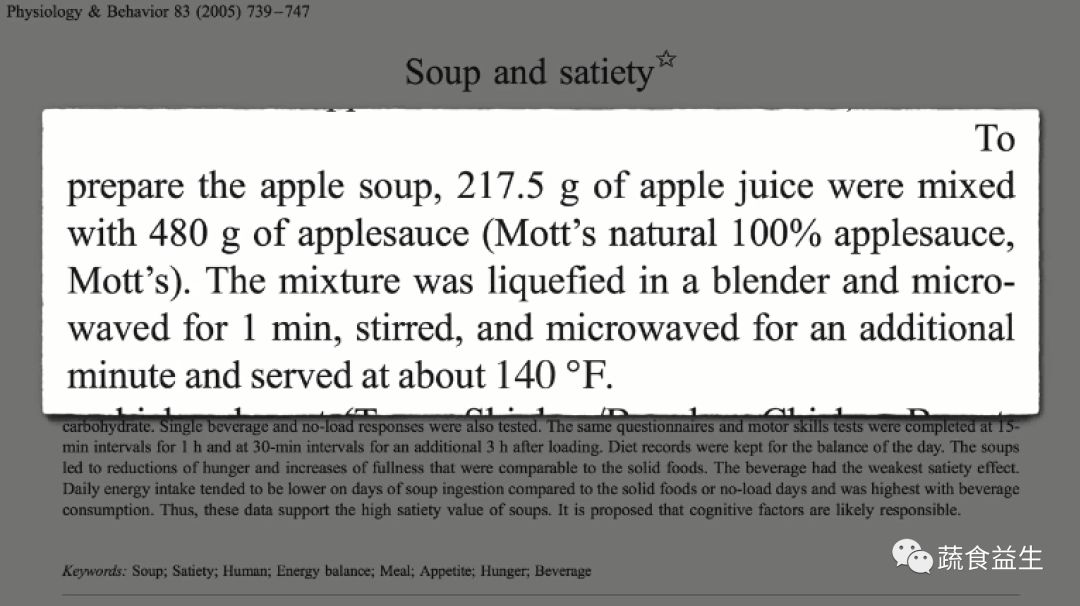 即使这个研究也是有瑕疵的。它声称饭前吃苹果会减少饥饿感而使你总体上热量摄取减少,而打成糊的苹果则效果没有这么好。