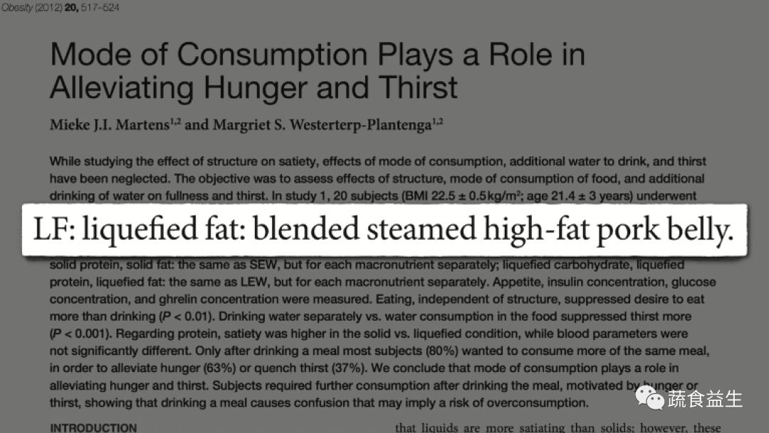 如果这个研究有第3组。一组吃固体食物,一组“喝”液体食物。如果再有一组是“吃”液体食物就好了。他们真的这样做了。