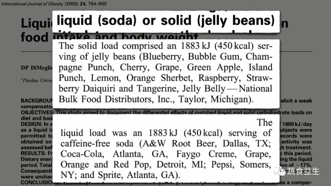2000年有个著名的研究是比较苏打(液体)和软糖(固体)对总热量摄取的影响。