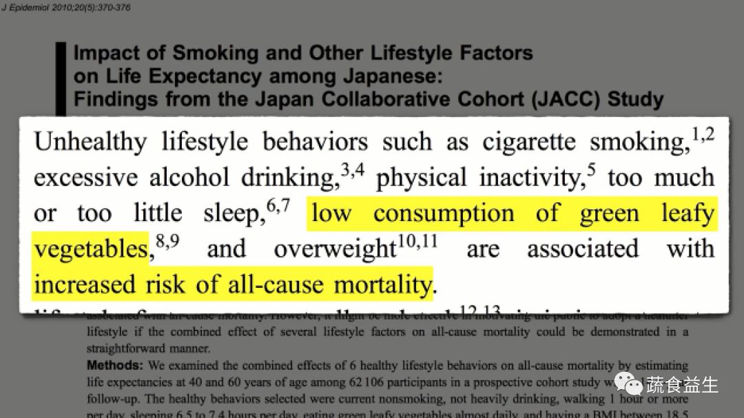 不健康的生活方式与增加过早死亡的风险有关,包括:吸烟、酗酒及吃了太少的绿叶蔬菜。