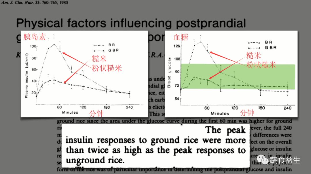 血糖和胰岛素的波动就会加倍。等量的食物,只是形式不同。这就是完整形式的全谷物比用粉状全谷物做的产品好的原因。