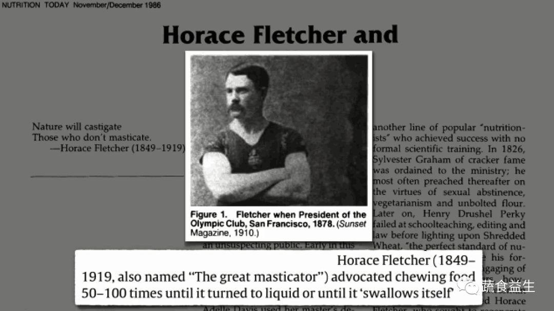 下图中这位先生提倡咀嚼食物50 – 100次成为液体后再吞下: