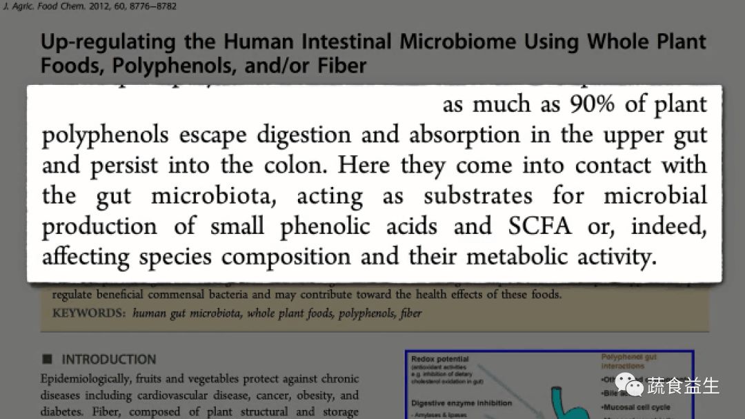 上图:高达90%的植物多酚逃过了消化道上段的消化和吸收,直接到达结肠。在那里接触肠道微生物,作为肠道微生物的培养基,例如小的酚酸和SCFA,确实,对肠道微生物的种类和新陈代谢行为有一定影响。