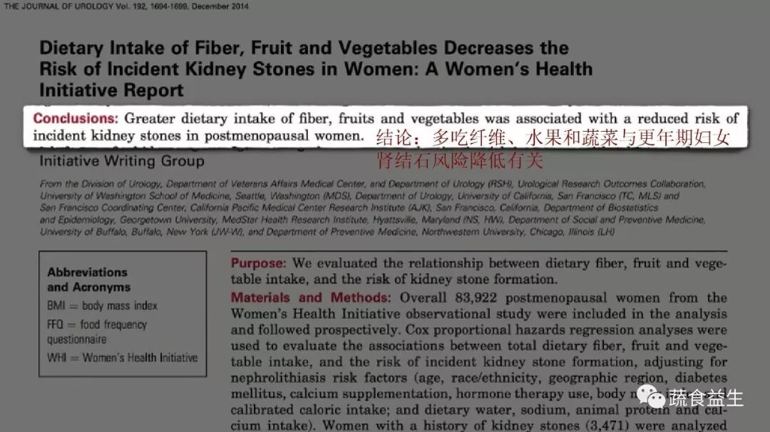 下图:结论:多吃纤维、水果和蔬菜与更年期妇女肾结石风险降低有关