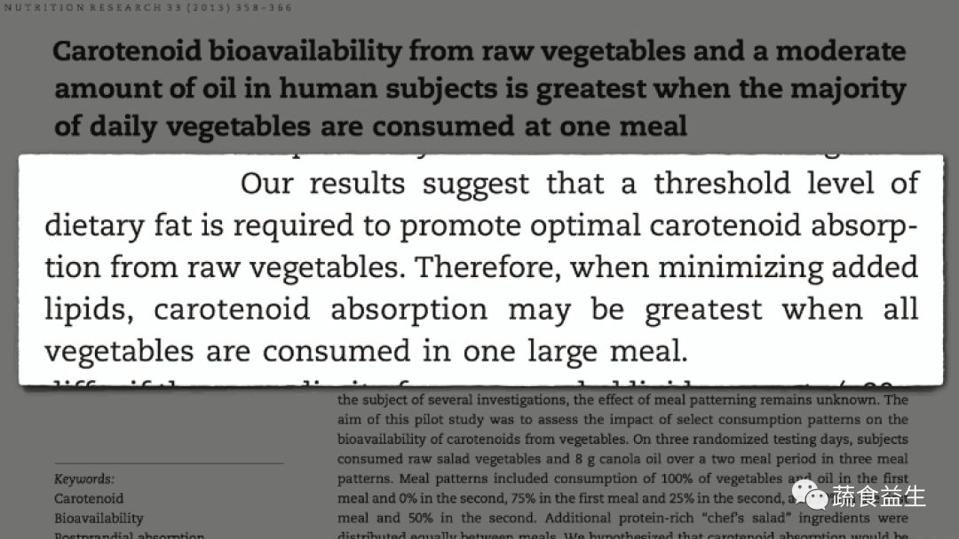 达到最佳吸收需要一个最低脂肪含量,加入与三个核桃脂肪含量相当的食物即可满足。