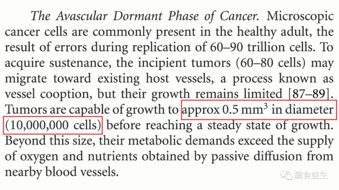 癌细胞是普遍存在于身体里的,但在需要连接到血液供给之前,它们不会长成比那个小点还大的肿瘤—不会超过1000万的癌细胞。