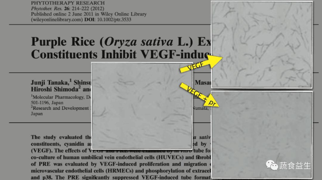 But, either way, you can stimulate blood vessel formation with the tumor compound VEGF, and then abolish that effect with plant compounds — in this case, from purple rice.