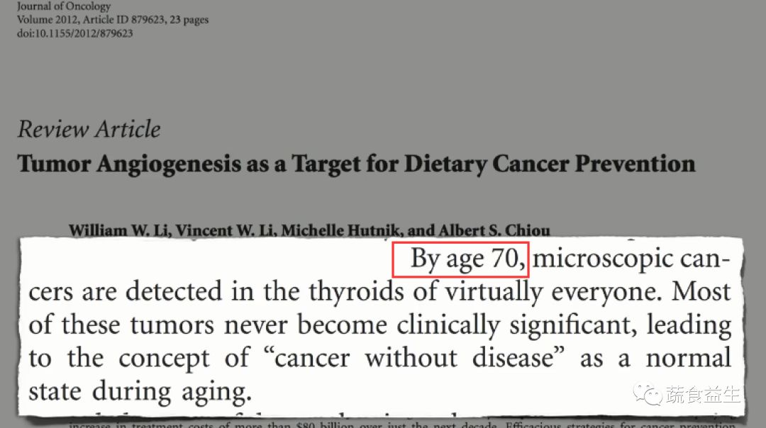 我们现在每个人身上都有癌细胞。比如,到70岁时,我们每个人的甲状腺都能检测出微小的癌肿。