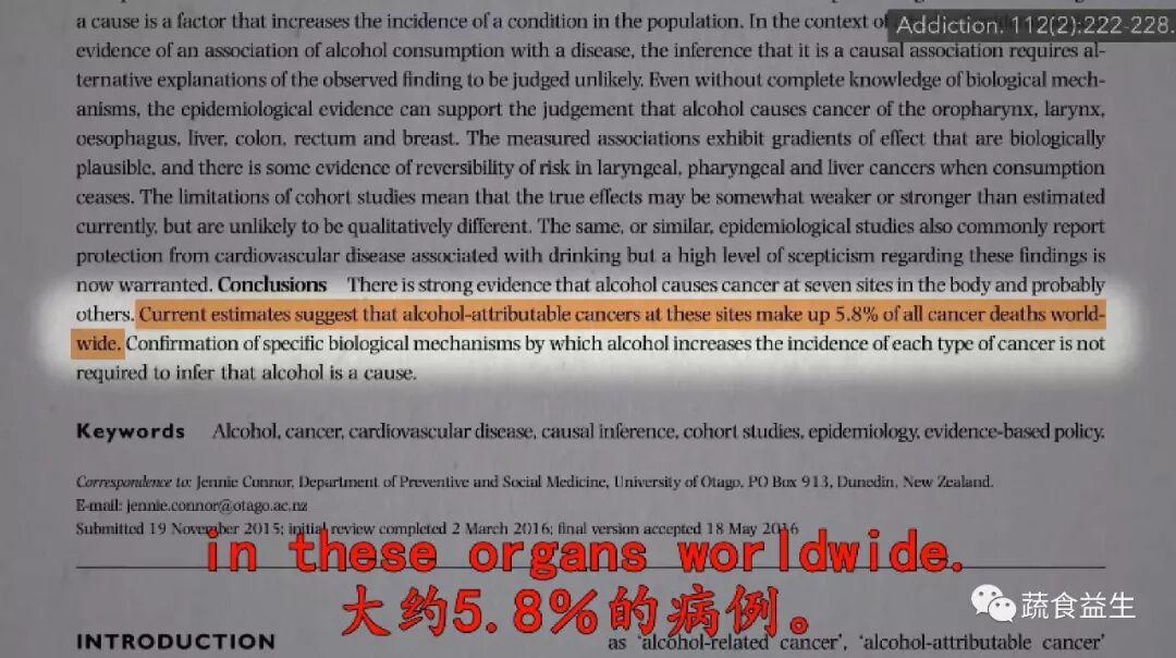 当前统计表明,在全世界,饮酒造成了上述癌症致死中大约5.8%的病例。