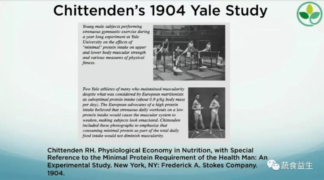 1904年,耶鲁运动员了解到,将蛋白质摄入量降低至每天64克,运动表现提高35%,而他们开始吃的蛋白质超过100克。