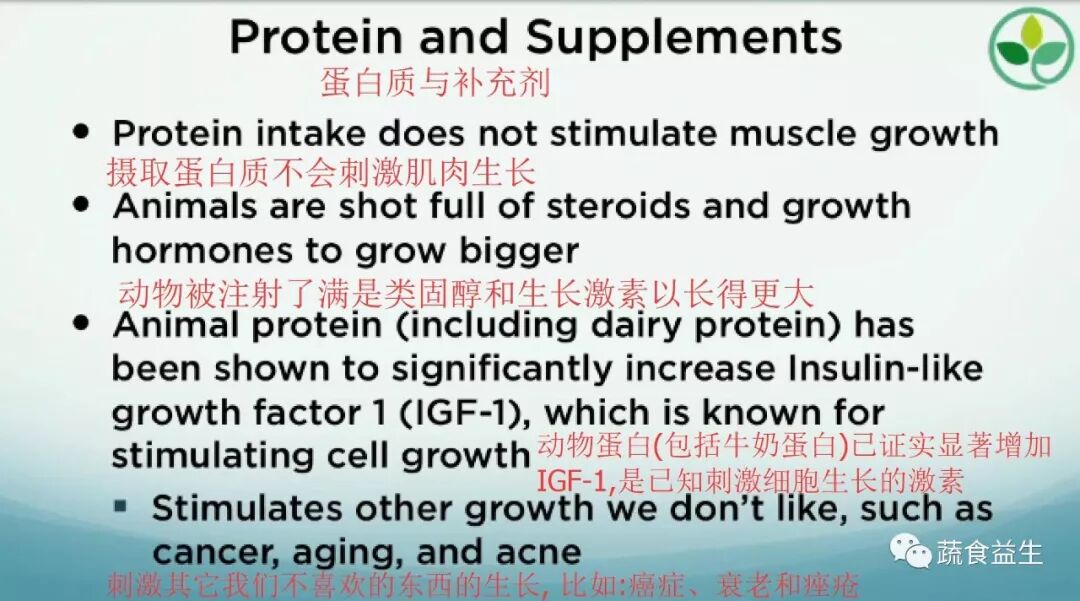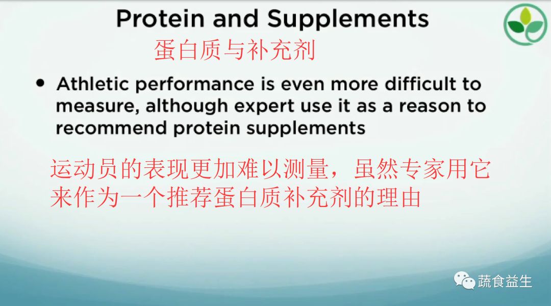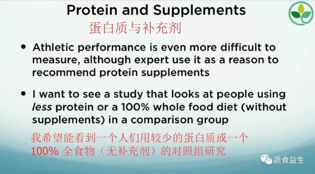 更有甚者,我们都愿意吞下没有通过黄金标准评估的分离蛋白粉。首先,他们(指售卖蛋白粉的公司)需要证明在健康蔬食的前提下,(不吃蛋白粉的话)人们不会提起同样的重物或有同样体能表现,所以他们需要证明(不吃蛋白粉)会有问题。(译注:因为演讲比较口语化,翻译时增加省略的词。)