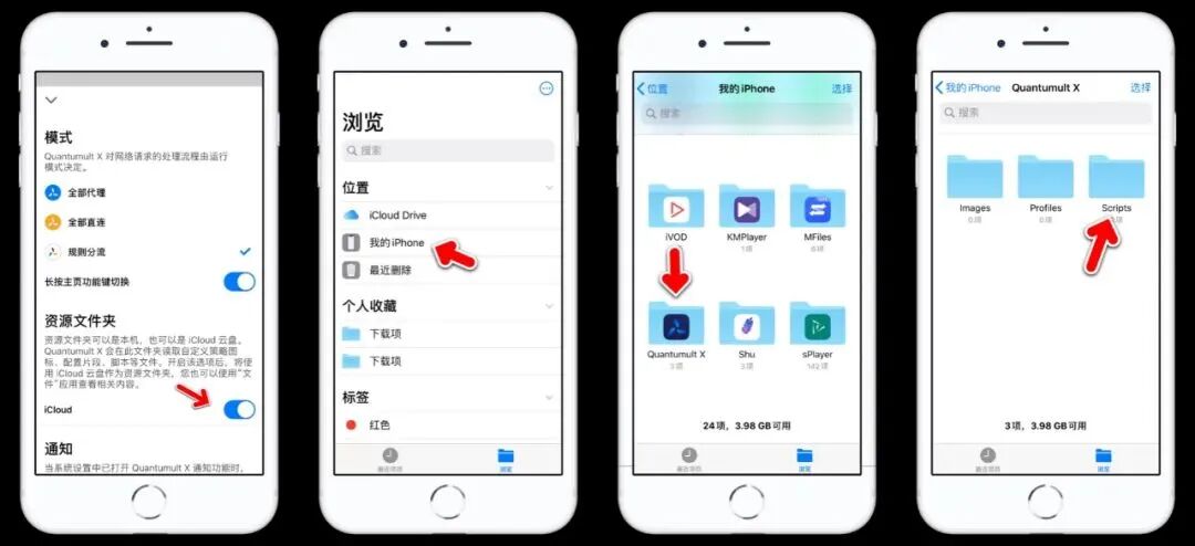 又有新手问,如果在群内看见一个关于QuantumultX的JS单个脚本怎么使用,把你下载的JS文件存入 我的iPhone-Quantumult X-Scripts文件夹即可,然后在配置界面编辑加入引用就可以用了,当然也可以存入iCloud,路径一样,但软件内需要开启iCloud即可。无论是远程文件还是本地文件一般都有说明,对应的位置放入对应的东西即可,可以自己研究研究。