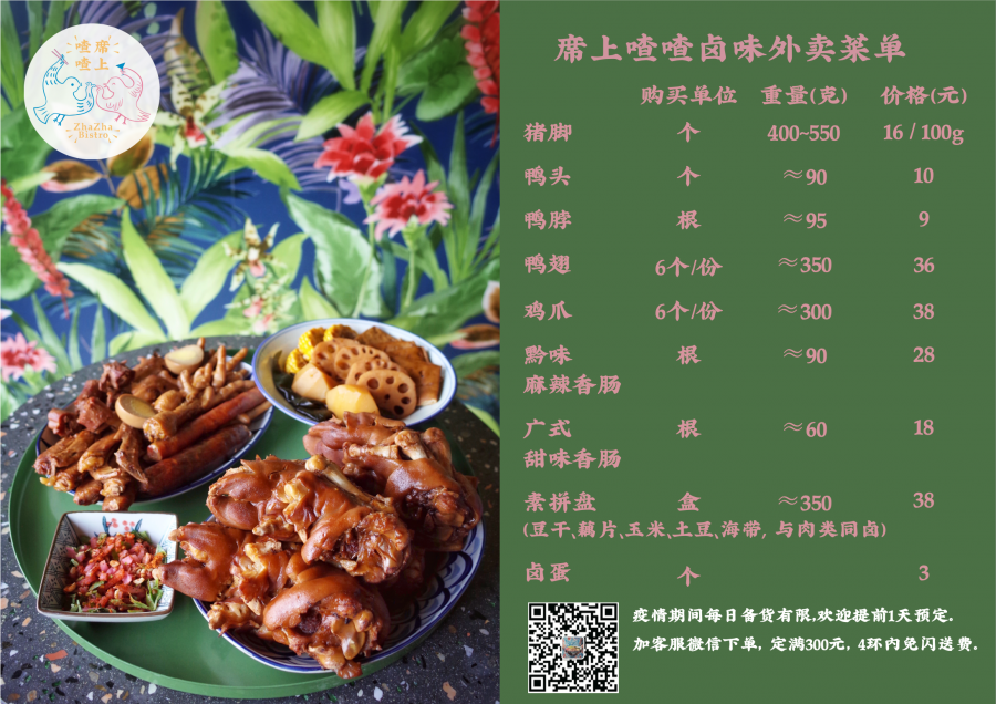 同时我们的外卖还将继续,半成品保鲜装包您全家满意!
