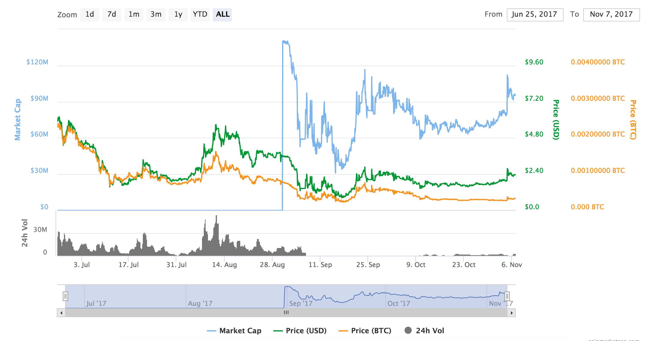 从上图可以看出,目前公信宝只上线了 2 个交易平台,而且主要在 Bit-Z 平台上流通。