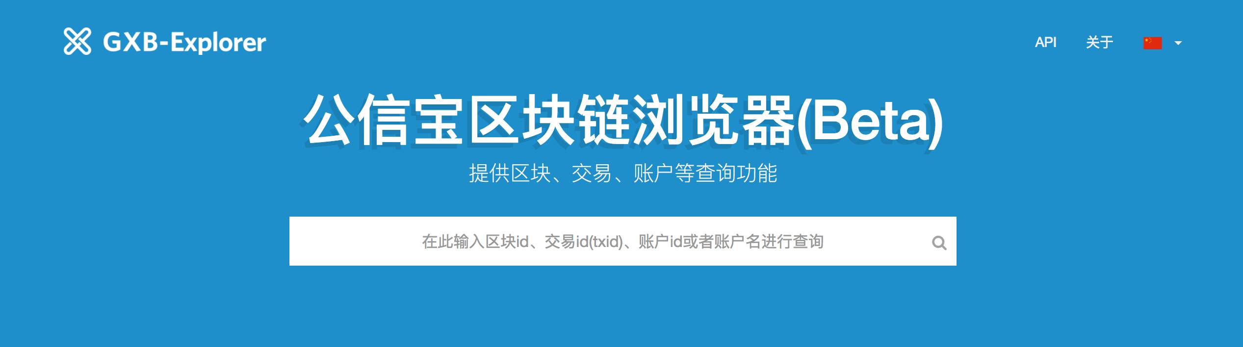 在区域 3,点击 Explorer,进入公信宝的区块浏览器,可以进行区块、交易、账户的查询。