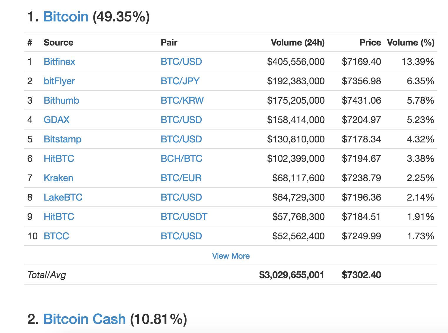 点击网站首页的 Trade volume 中的 24 Hour Volume Rankings (Currency),不同币种的 24 小时交易量排名都会出现,如下图: