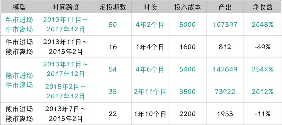 从上面可以看出,比特币一个牛熊的周期在2~3年,成功的定投就是要跨越牛熊,并且从一定是在牛市离场,所以,这个这个试验的时间设置为3年。