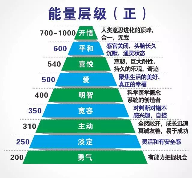 200以上的意念通常表现是:喜欢关怀别人,慈悲心、爱心、行善、宽容柔和等等,这些都是高的振动频率,达到400到500。