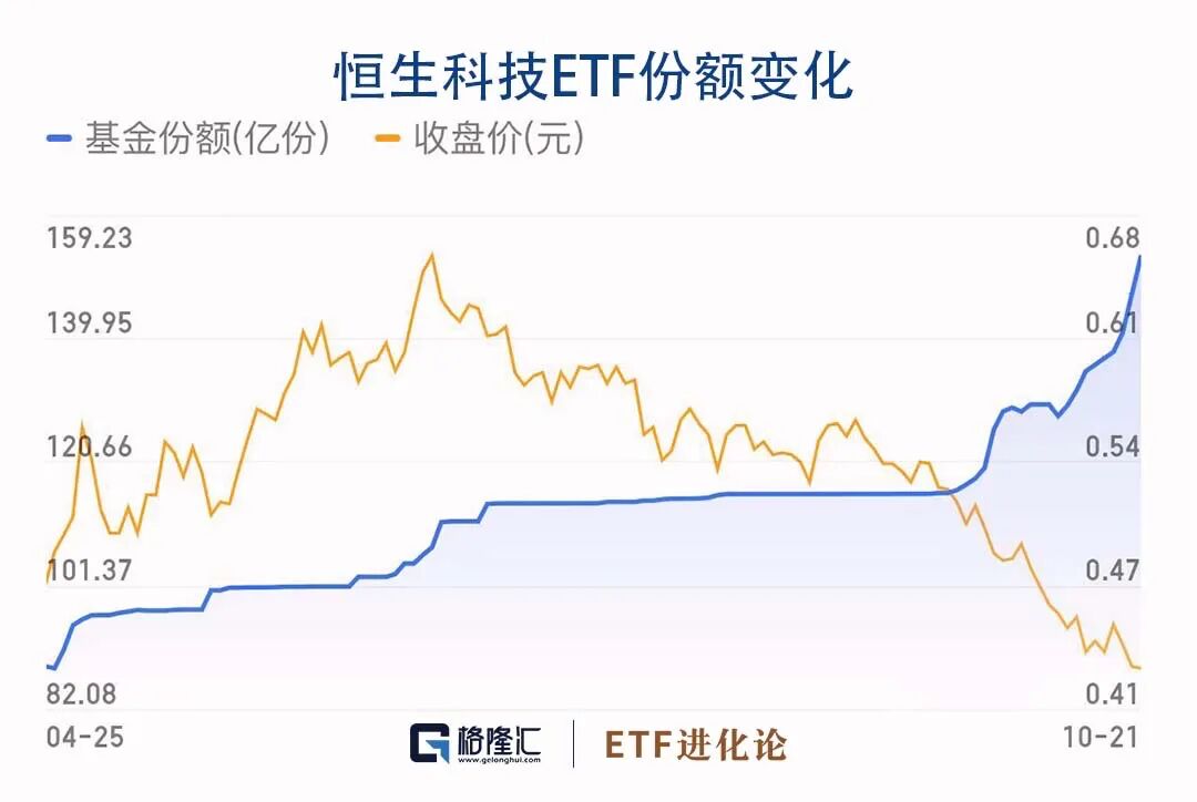 恒生互联网ETF、恒生科技指数ETF,今年份额增长超百亿份。国庆后,增长势头更为明显。