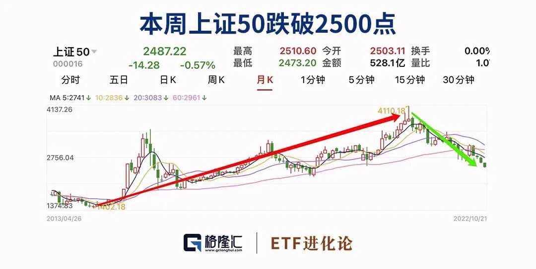 值得注意的是,本周上证50跌破2500点,再创调整新低,一路下跌近40%。