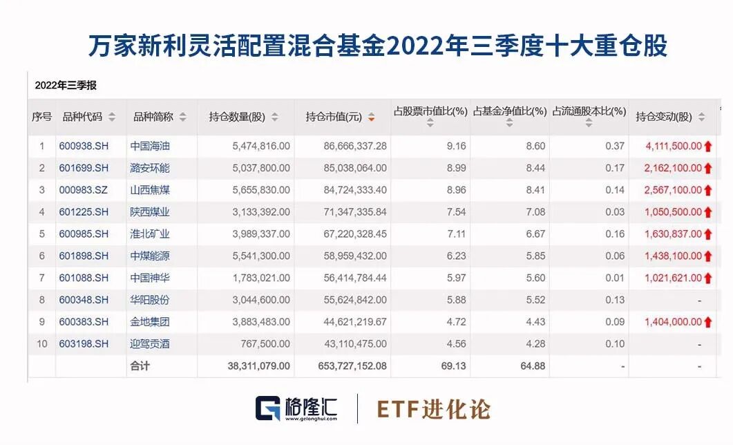 具体以万家宏观择时多策略为例来看持仓变化,与二季度相比,中国海油、中国神华、华阳股份、迎驾贡酒新晋十大重仓股;潞安环能、山西焦煤、陕西煤业、淮北矿业获加仓;兖矿能源、晋控煤业、建发股份、保利发展跌出前十。