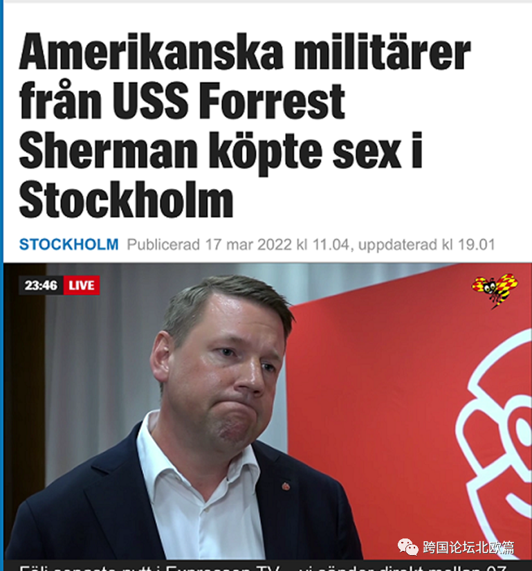 2022年3月17日,瑞典媒体报道,两个来自停靠在瑞典首都斯德哥尔摩的美国军舰的美国军人因为在斯德哥尔摩市中心的一个秘密公寓妓院向两个乌克兰妇女买春被瑞典警察抓捕。而卖淫妇女却没有被追究法律责任。